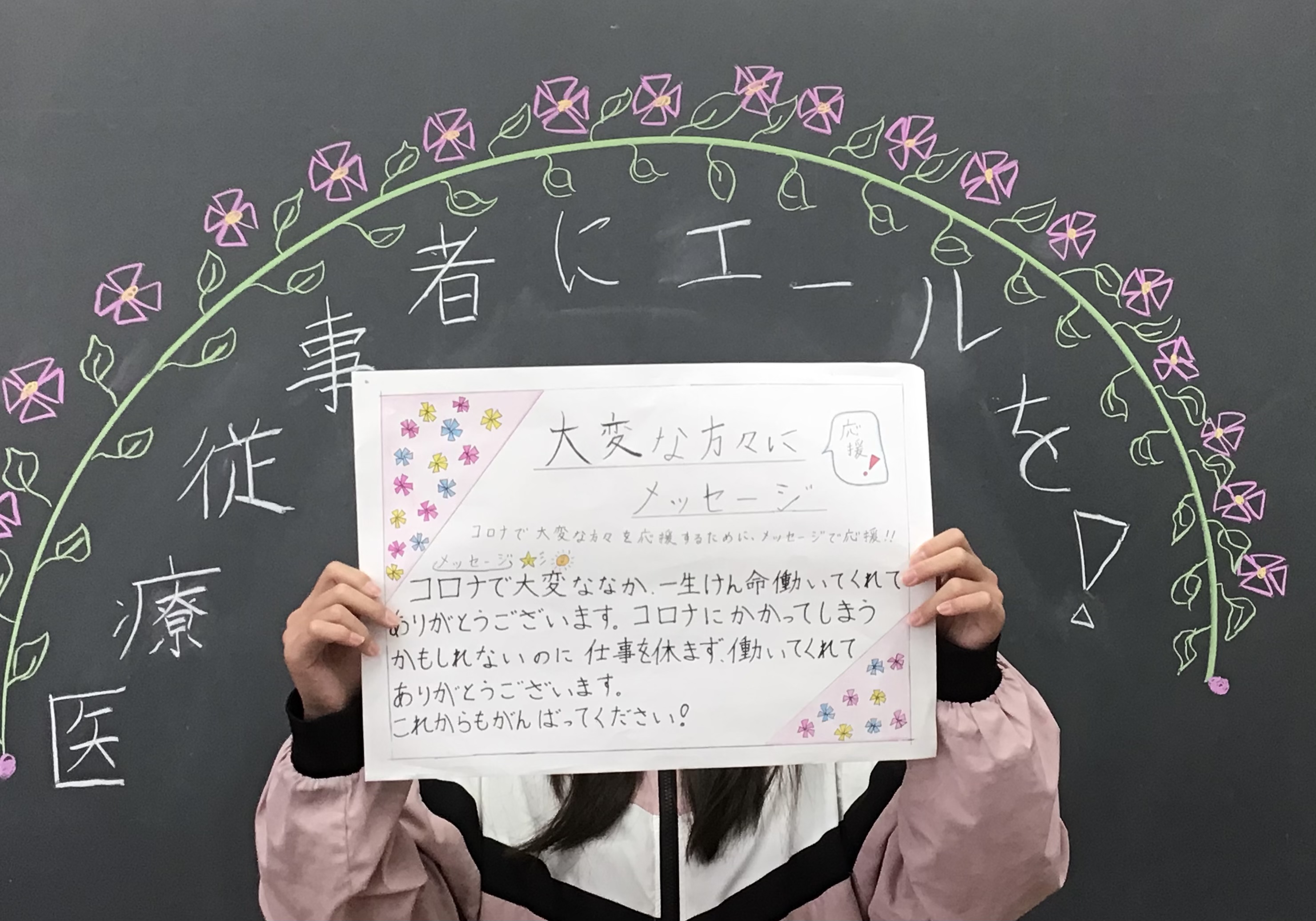 コロナ禍の中、医療従事者の方々が一生懸命働いてくれているのでそのお礼や感謝の気持ちを伝えるためにこの活動をしています。