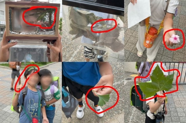 今朝も大きな「カマキリ3匹」や「イナゴ」、そして、「コスモスの花」など、秋を感じさせるものをみることができました。また、定番の「ねこじゃらし」、「イチョウの葉」だけでなく、大きな「プラタナス?」の葉も通っていきました。