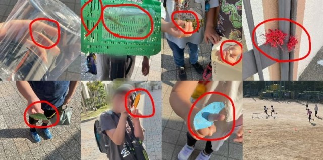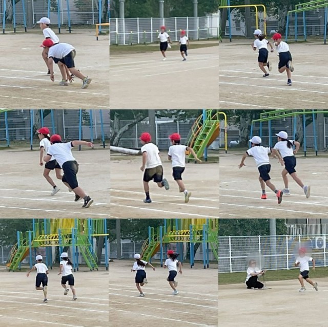 今朝は、珍しい、「ゾウムシ」や数多くの「ショウリョウバッタ」をみることができました。「葉っぱ」や指をゾウの鼻に見立てた「折り紙作品」も通っていきました。6年生の連競練習では、50mハードルにも挑戦していました。