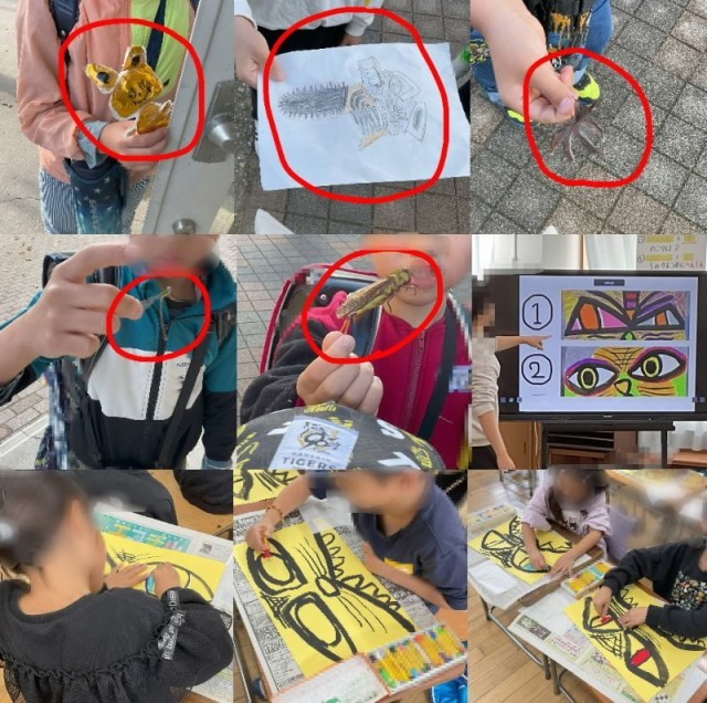 今日も寒い朝となりました。「折り紙作品」や「アニメのキャラクターの絵」をみせに来た児童がいました。また、「紅葉の枯れ葉」や「イトトンボ」そして、「トノサマバッタ」もみることができました。