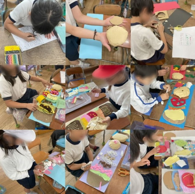 2年生の図工のようすです。おいしそうなハンバーガーセットが出来上がっていました。