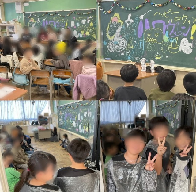 4年生は学級会で、ハロウィンパーティを行っていました。劇などをして大いに盛り上がっていました。