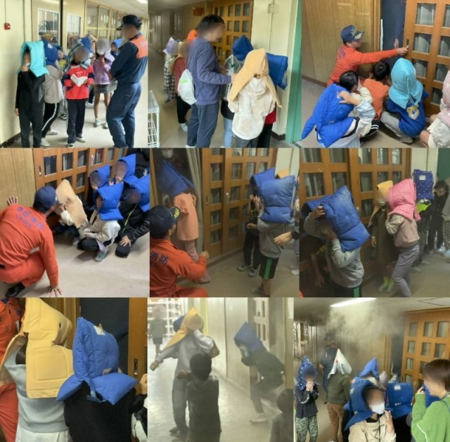 3年生は避難訓練終了後、運動場に残り避難訓練の後に行う、煙中体験についての話を聞き、場所をプレイルームに移して、順番に煙中体験を行いました。スモークマシンで煙を発生させ、真っ暗にした部屋を通り抜ける体験は初めての児童が多く、いざという時の良い訓練ができました。忙しい中、子どもたちのためにお時間を作っていただいた、池田市消防のみなさんありがとうございました。