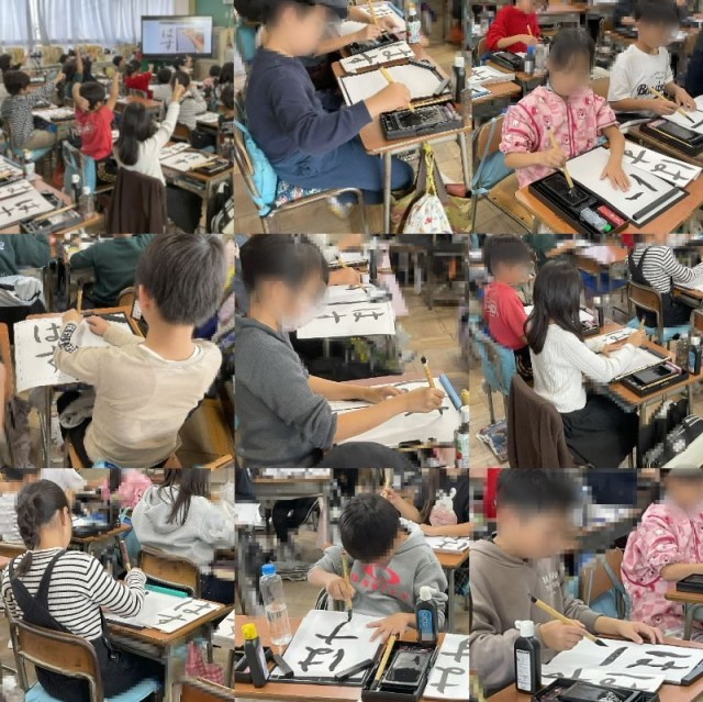 4年生は習字の時間にひらがなの「はす」の字を書いていました。動画で書き方をみた後、漢字の書き方と違うところを意識しながら、書いていました。どの児童も集中して取り組んでいたので、昨日の6年生と同じように、教室には静かな時間が流れていました。