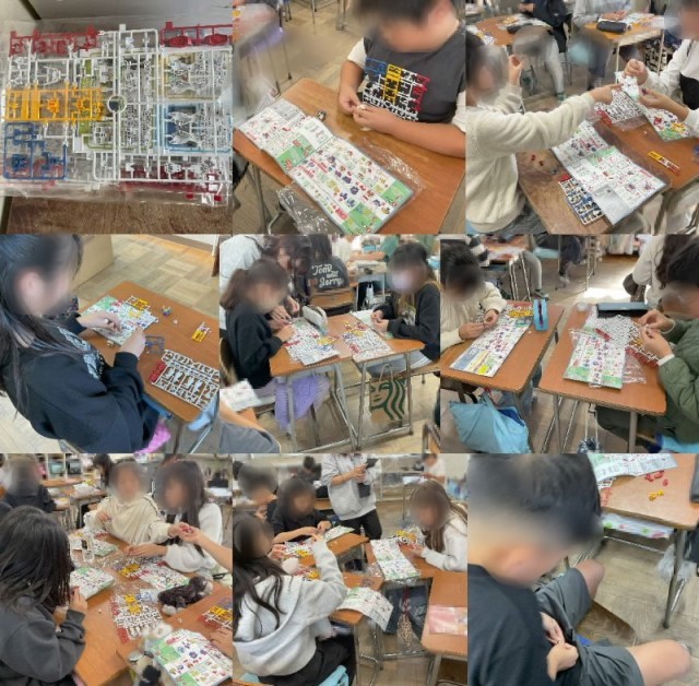 5年生はBANDAIさんから提供を受けた、「ガンプラづくり」に取り組んでいました。細かい部品が多く、取り外しから組み立てまで苦労していましたが、説明書をみながら、楽しそうに作っていました。
