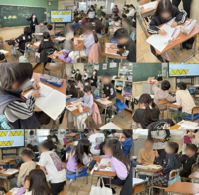 4年生は算数の「変わり方調べ」の研究授業を行っていました。大勢の先生方に見守られる中での授業でしたが、子どもたちは緊張することもなく、落ち着いて授業に参加していました。