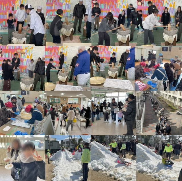 はたの地域コミュニティさん主催の「雪遊びイベント」が開催されました。なんと豊岡市からトラック8台分もの雪が到着! 24日の準備日には、地域や保護者の皆様が「150周年記念の餅つき・豚汁」の準備に尽力してくださいました。 迎えた25日の本番、秦小の子どもたちだけでなく、地域の多くの親子連れで大賑わい。雪遊びで歓声をあげ、つきたてのお餅が入った温かい豚汁を頬張る、笑顔あふれる週末となりました。ご協力いただいた皆様、本当にありがとうございました。