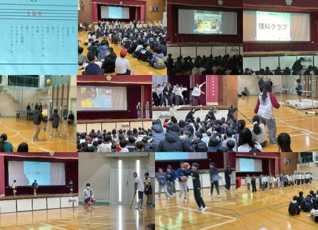 28日の今日は体育館でクラブ発表会が行われました。来年度から活動に参加する3年生は、紹介動画や先輩たちのパフォーマンスに釘付け。「どのクラブに入ろうかな」と真剣な眼差しでみていました。