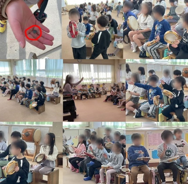 1年生は音楽の時間に、打楽器「タンバリン」の練習をしました。曲に合わせて、リズムや音の強弱を工夫しながら楽しく演奏していました。