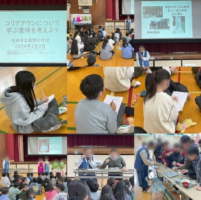 6年生は、呉服小学校からゲストティーチャーをお招きし、国際理解学習の出前授業を行いました。6日(金)の卒業遠足で訪れる「コリアンタウン」の歴史や生活文化の違いについてお話を伺い、メモを取りながら真剣に耳を傾ける姿が印象的でした。