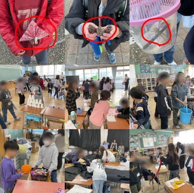 朝の登校時間には、「サワガニ」が久しぶりに登場しました。「カマキリ」・「ショウリョウバッタ」・「イナゴ」は、10月に入ってから多くみる機会が増えました。また、昨日は、中秋の名月にあわせた、「ススキ」や定番の「イチョウの葉」を持ってきた児童もいました。他にも「折り紙作品のサメ」や「キティちゃんのタイルシール」などをみせてくれた児童もいました。