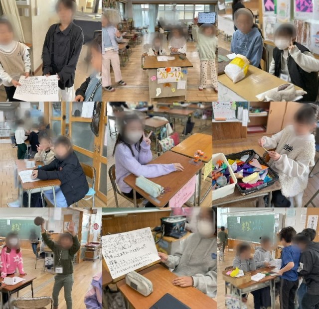 1時間目に準備を行い、2時間目~4時間目に「秦小フェスタ」を行いました。各縦割り活動班で前半後半に分かれて、お店当番や宣伝をしたり、他のお店をまわったりしていました。高学年の児童は、ペアの低学年児童のペースに合わせて、お店まわりをするなど優しい姿をあちらこちらで見ることができました。異学年交流の素敵な時間をすごすことができていました。