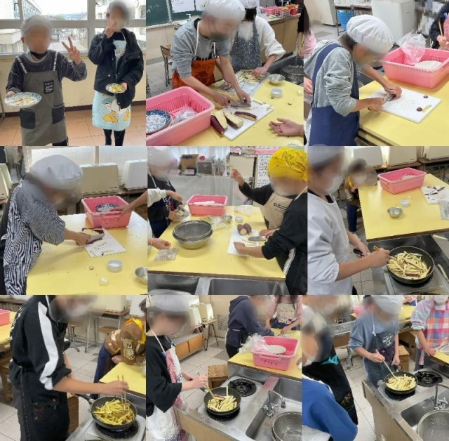 10日に5年生が家庭科の調理実習で作った「サツマイモのバター炒め」を届けてくれました。今日は別のクラスが家庭科の時間に調理実習を行っていたので、参観しました。冬のサツマイモは硬くて、包丁で薄く切るのに、少し苦労していましたが、交代しながら頑張って切っていました。切れたサツマイモは水洗いしてから水気をとり、バターをからめながら、フライパンで炒めていました。バターとサツマイモの甘い香りが廊下にまで漂っていました。