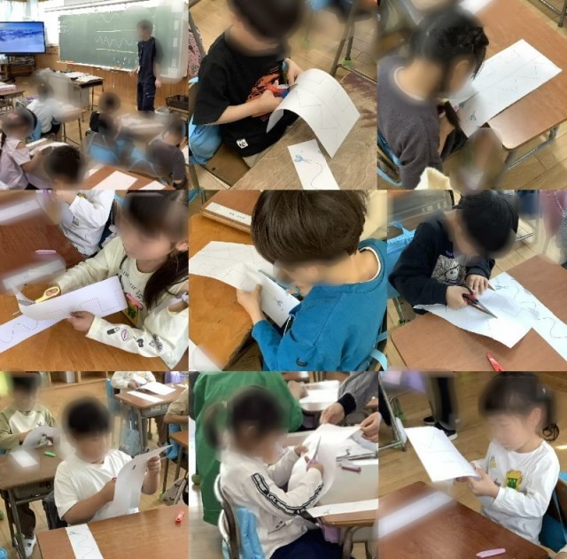 4年生の図工の授業では「飛び出すメッセージカード」を制作しました。早く完成した児童は自由工作に取り組み、手作りの糸電話や造花を誇らしげに見せてくれました。