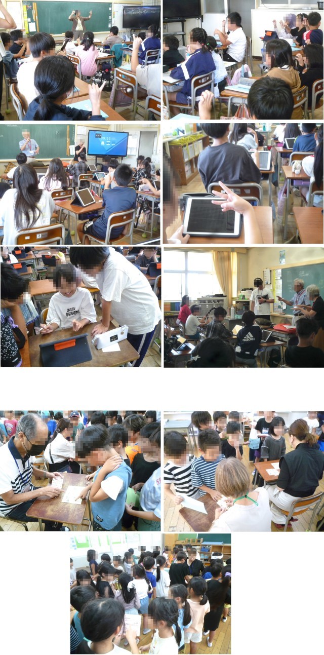 〇ボランティアの方に来ていただき、4年生が「手話」の学習をしました。五十音の指文字を、その形や成り立ちなども含めて教えてもらいました。自分の名前を伝えたり、クイズやしりとりで手話に親しんだりしました。最後には、手話で自己紹介にも挑戦しました。
