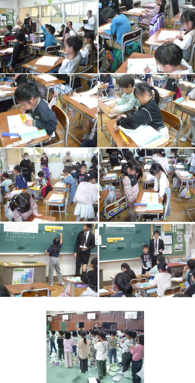 1年生の算数は「くり上がりのたし算」の学習を始めました。これまでのたし算との違いを見つけ、どうすれば10を作ることができるか考えました。ブロックをうまく操作して考えていきました。友だちがノートに書いた考えを、歩いて見て回り考えを深めていました。