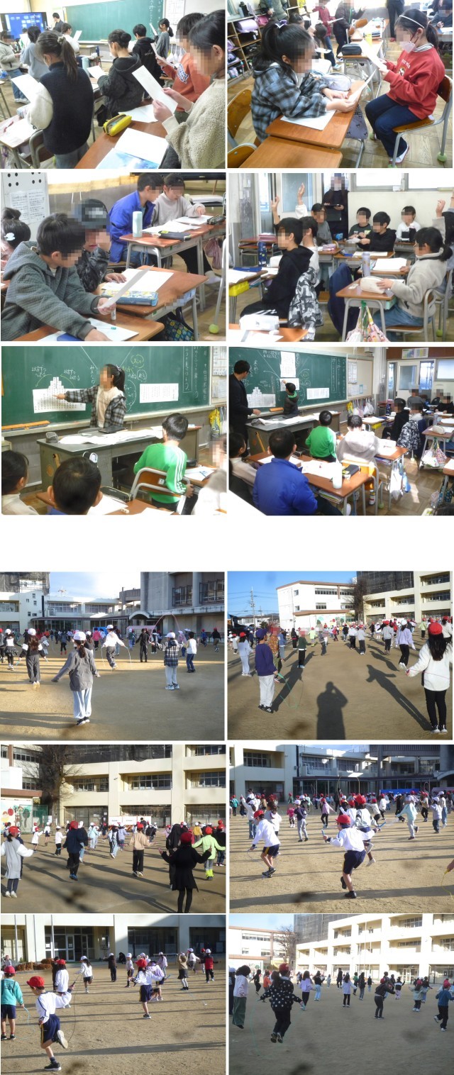○今日の「なわとび集会」は低学年でした。時間内での一人跳びを練習しました。
