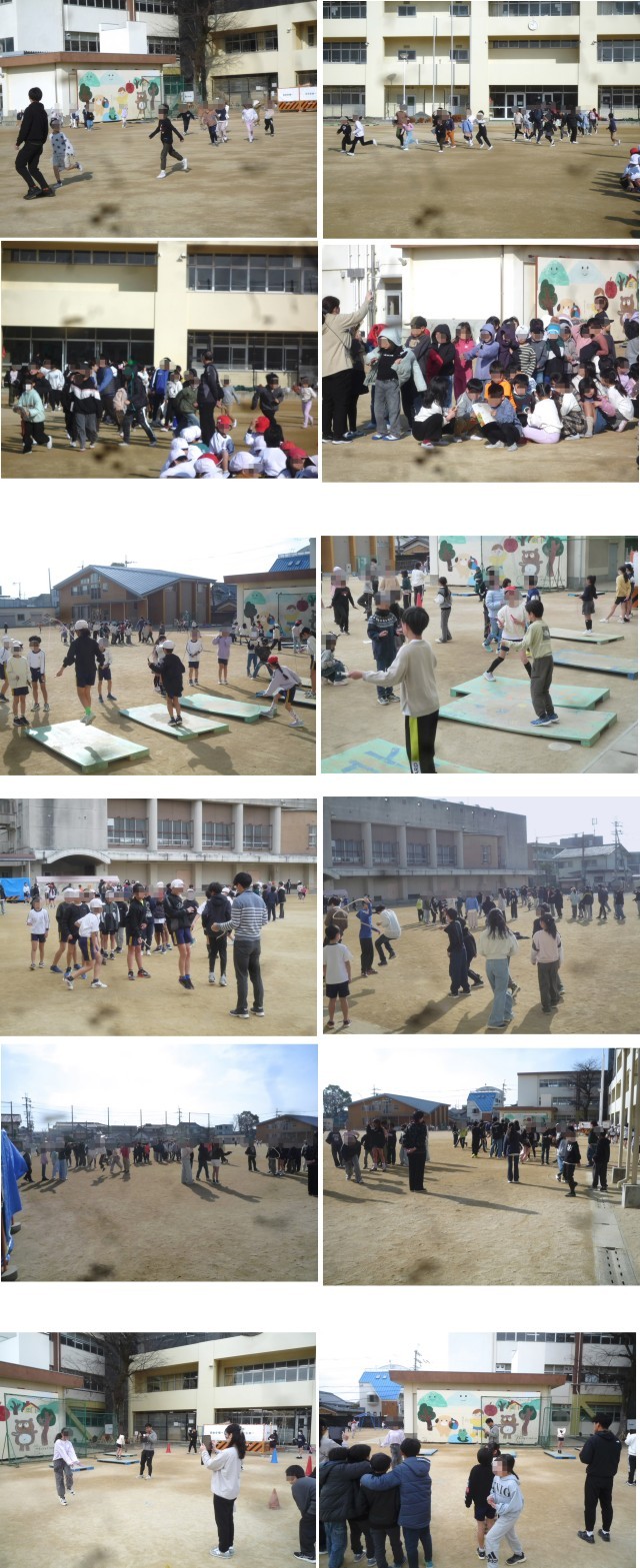 ○昼休みなど休み時間は子どもたちの声が運動場に響き渡っています。なわとび大会に向け、個人でジャンピングボードを使って練習をしたり、各学級のグループで集まり大縄の練習をしたり。大縄では、縄の回し方、大縄に入る位置やタイミングなど、アドバイスしながら練習しているグループもありました。目標に向かって自主的に練習しようとする姿勢がすてきです。昨日は、なわとび大会の時に視聴するチャレンジコーナーに参加する子どもたちのビデオ撮りがありました。様々な難しい跳び方に挑戦していました。