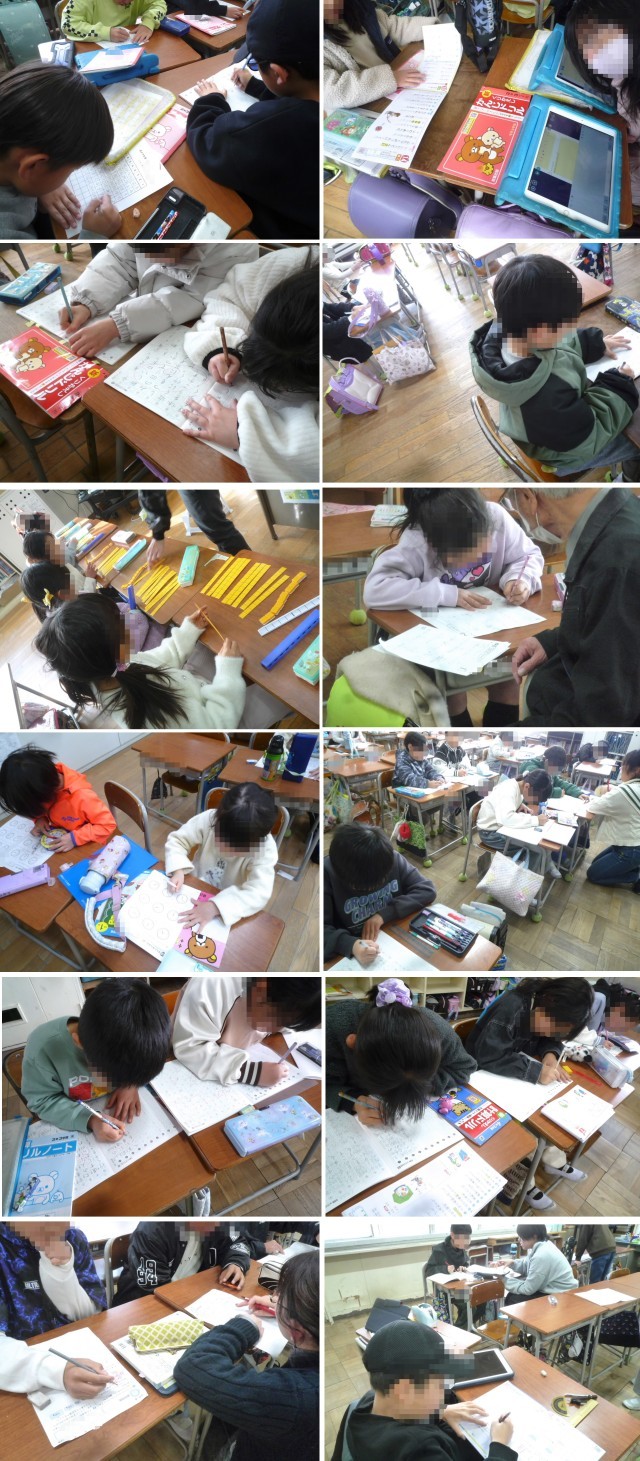 毎週火曜日の放課後は「まなびタイム」です。全学年で行っています。自分の課題にむけての学習を進めています。担任の先生だけでなく、学年に関わる先生も見守り、支援しています。放課後も残り、学習に取り組む姿がすばらしいです!