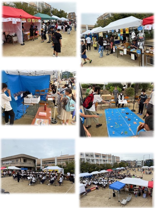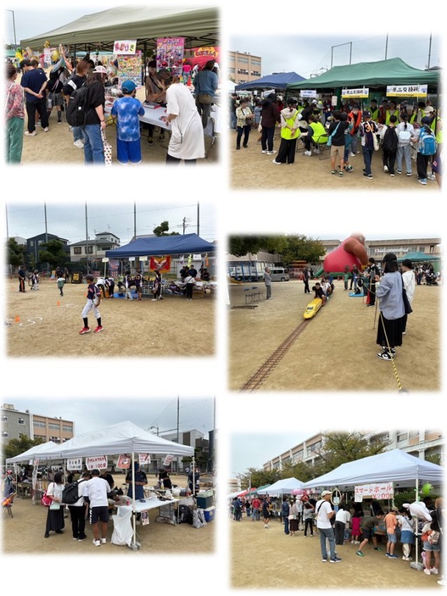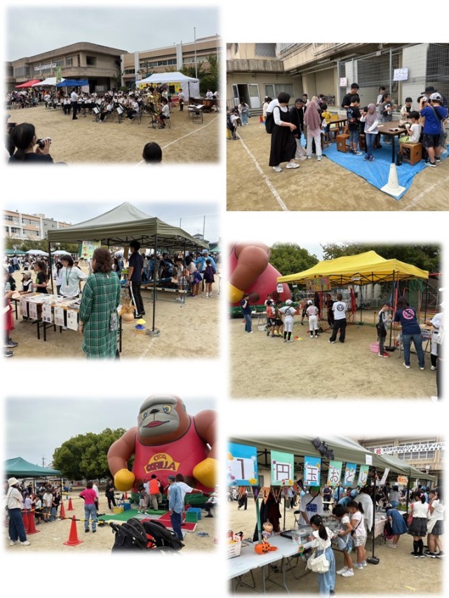 グラウンドを囲むように多数のブールが設置され、PTAやキッズランド、地域の方々、そして呉服小学校の6年生が出店していました。