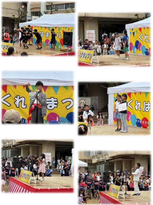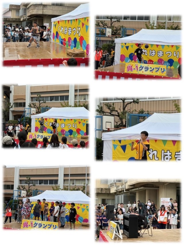 続いて午後は、「呉ー1グランプリ」と題し、3分間以内ならどんな出し物をしてもいいという企画で呉服小学校の児童に募集をしたところ、多くの応募があり、当日は20組の子どもたちが歌やダンス、漫才、マジック等、様々な”得意”を披露してくれ、大変盛り上がりました。