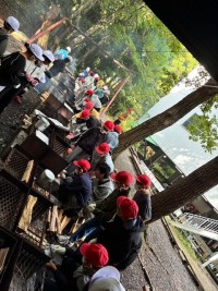 今朝、呉服小学校の5年生はバスに乗って鉢伏へ自然学舎に向かいました。
