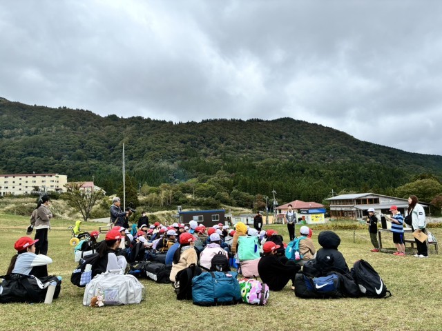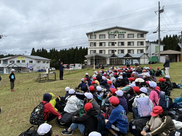 今朝、呉服小学校の5年生はバスに乗って鉢伏へ自然学舎に向かいました。