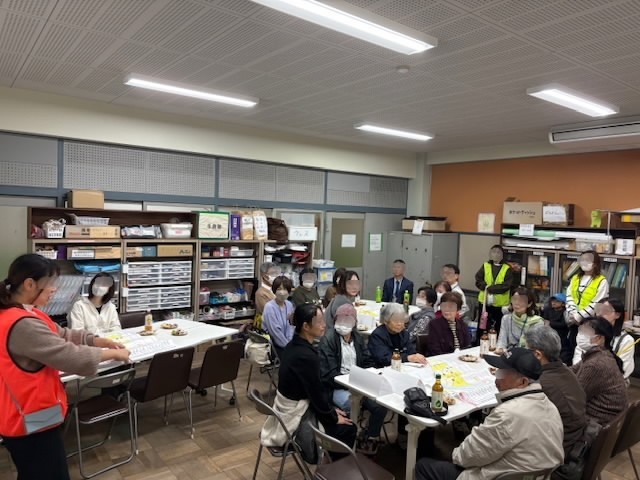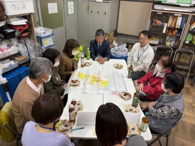 また、その後、日頃から見守ってくださっている地域の方々にPTA会議室にお越しいただき、それぞれが日頃から気になっていることや、危険個所について交流しました。最後に、各グループから出た情報を共有し、出た意見を地域安全委員会の方々がまとめ、各家庭に配布されました。