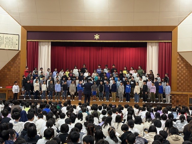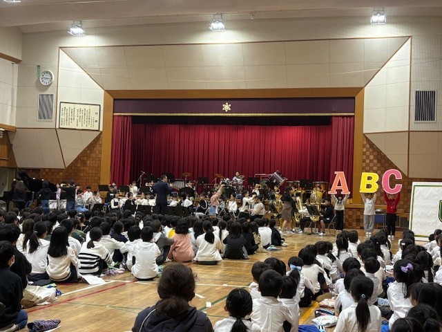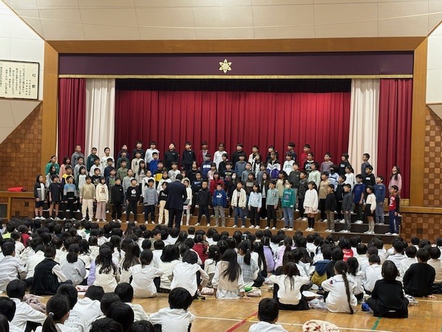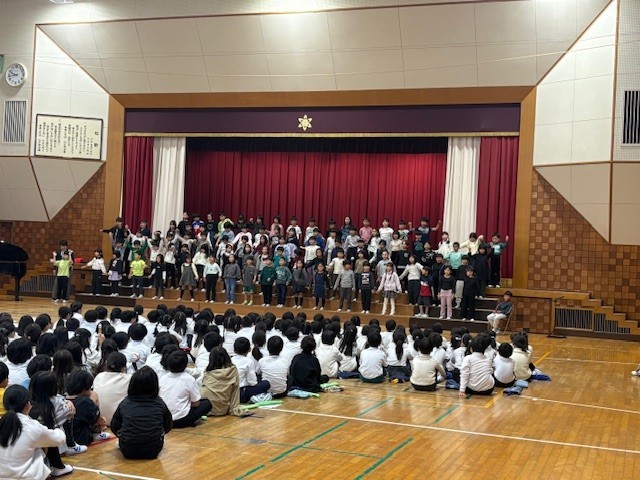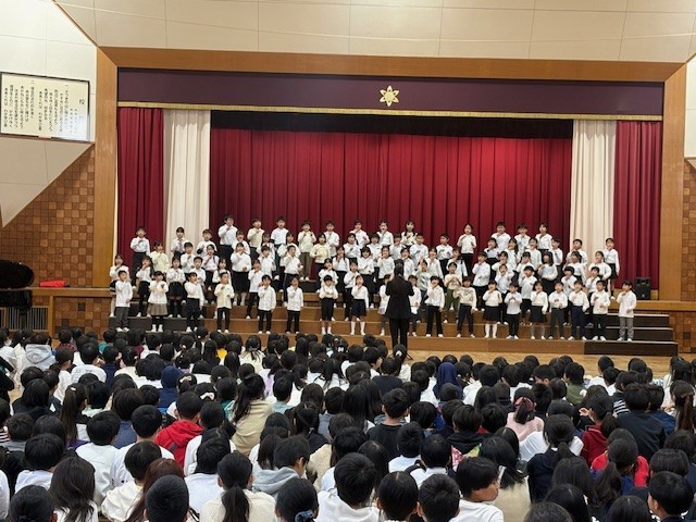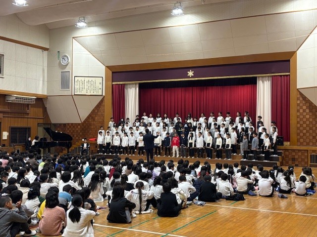 今日(11月11日)、児童対象の音楽学習発表会が行われ、子どもたちは他の学年の合唱・合奏や吹奏楽部の演奏を鑑賞しました。
