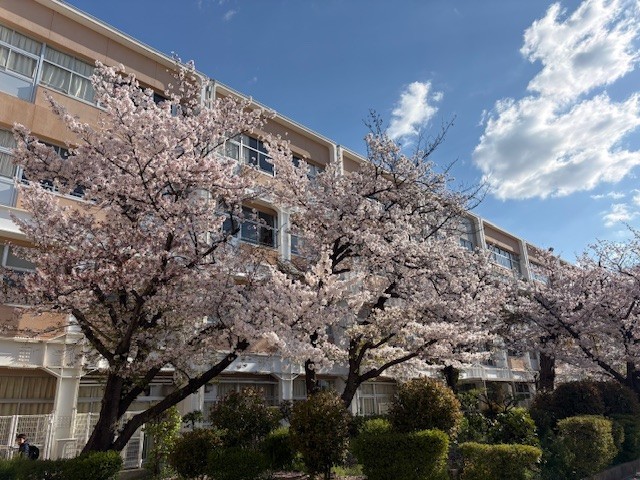 今年はかなり早くから暖かくなり、桜の咲き方が気にはなっていましたが、見事満開の中での入学式でした。