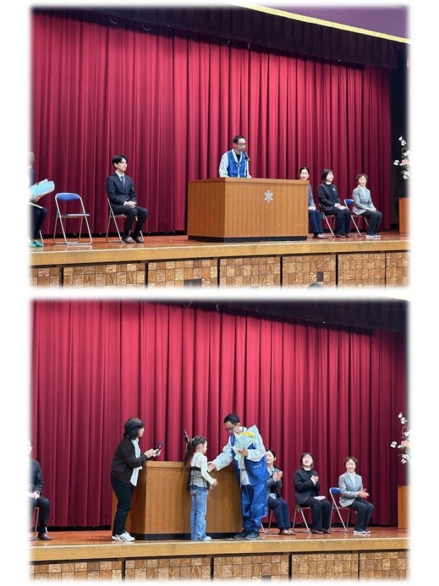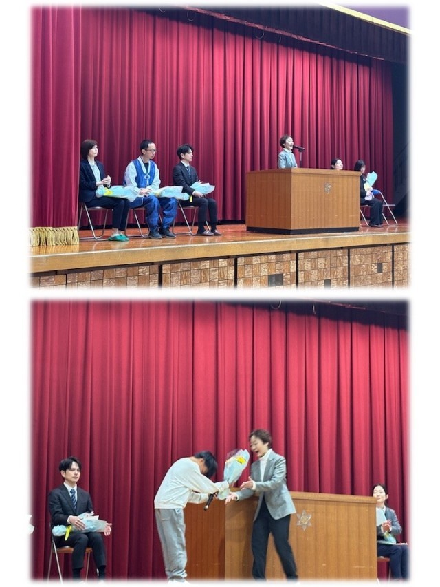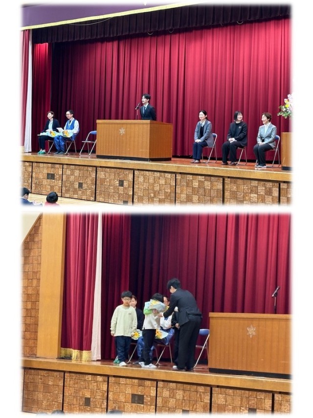 一人ひとりの先生方から一言いただき、代表の子どもからお手紙を読んだり、花束を贈りました。