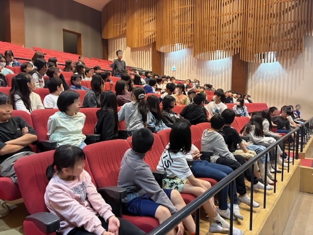 今日は、6年生が5時間目に、池田警察の少年係の方々に音楽堂に来ていただき、「非行防止教室」と題し、主にSNS被害について出前授業を行っていただきました。耐震工事後、学校行事としては初めてで、久しぶりの音楽堂を利用しました。