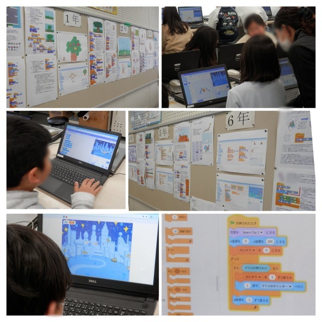 2020年度から小学校でもプログラミング学習が必須化されていますが、本校ではScratch(スクラッチ)という教材を使って、1~6年生まで体系的に指導をしています。