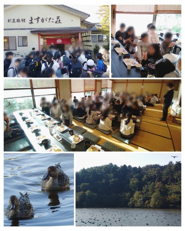 旅館は貸切。今日は入浴して寝るだけですが、子どもたちはなかなかのハイテンションです。「男子化粧室」という表示を見て、「え〜っ、男の人も化粧するんや……」と言っている女子(6年!)がいました。実に石小っ子です(?)。