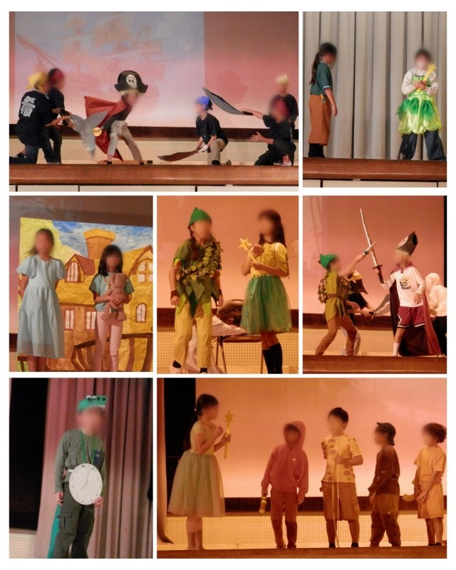 明日は学習発表会の児童鑑賞日、つまり1回目の本番。ということで、4年生の劇『ピーターパン』の通し練習を見せてもらいました。衣装や小道具を身につけての練習でしたので、とても見ごたえがありました。4年生の子たちの元気で楽しい雰囲気が劇のさまざまな場面に生かされています。もちろん修正すべきポイントはまだまだありますが、今日はとても楽しく見せてもらいました。