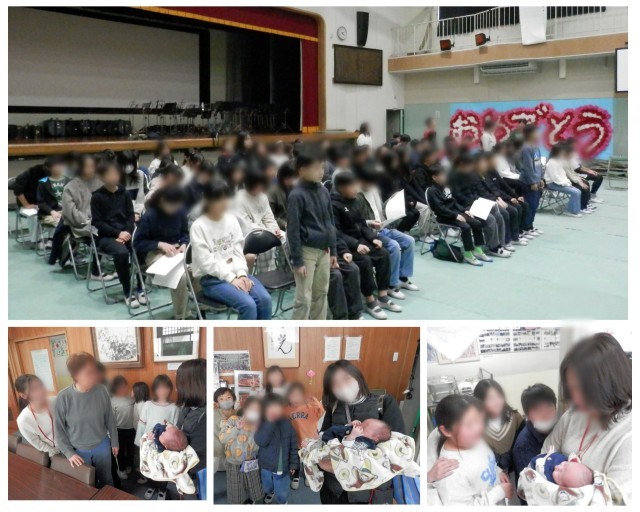 今日は、この1月に出産されたN先生が、赤ちゃんを連れて来てくれました。たまたまそのタイミングで校長室に来ていた子たちは大喜びでした。「かわいい~」「ちっちゃい~」などと口々に言っていますが、大人からすれば、あなたたちが赤ちゃんだったのもつい最近という感じなんですけどね~。はかないぐらいちっちゃい手にはちゃんと爪もあって、手のひらに指をあてるとぎゅっと力強く握ってくれました。