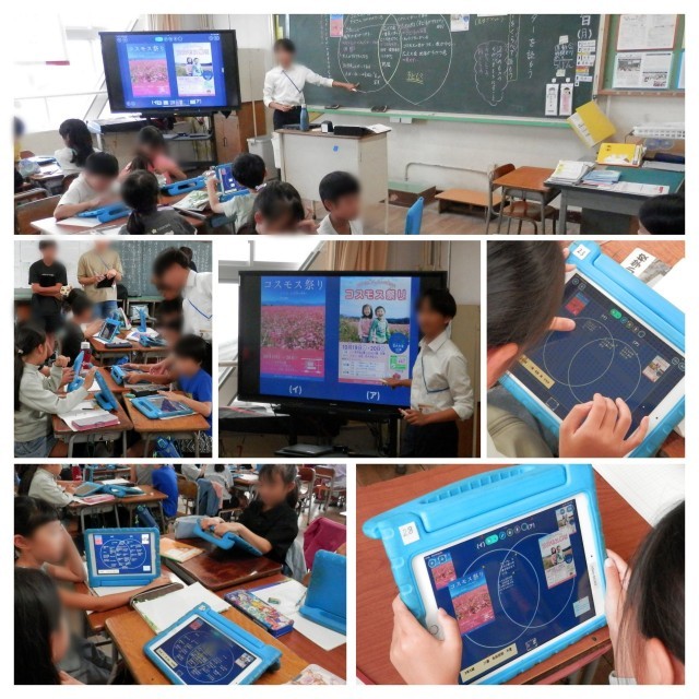 府より「情報担当教員」を配置され、全学年、国語科の時間を使って「情報」の学習を進めています。特に思考ツールという、情報を比較したり、分類したりするツールを使って、思考を深めていくことを土台として、それを各教科の学習活動につなげていくことを目指して実践を重ねています。