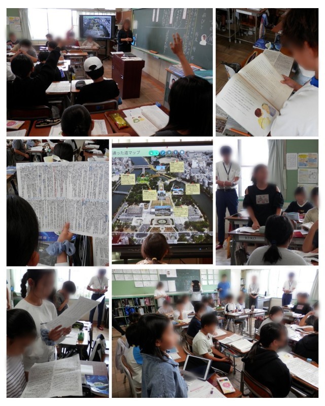 今日は、主人公が広島の平和公園で巡ったルートをたどりながら、それぞれの場所で何に気づき、どんな思いを抱いたのかを考える授業でした。