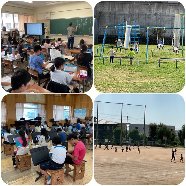 今朝は、爽やかな風が吹き、日中は少し汗ばむ陽気となりました。今日4時間目は、3年生国語の研究授業がありました。「ちいちゃんのかげおくり」の第1場面についての学習で、子どもたちは集中して取り組んでいました。お昼休みの様子です。運動場では、子どもたちがブランコやボール遊びを楽しんでいました。また、運動会に向けて応援団が音楽室に集まり、顔合わせと今後のスケジュールについて確認しました。運動会に向けて少しずつ準備を進めています!