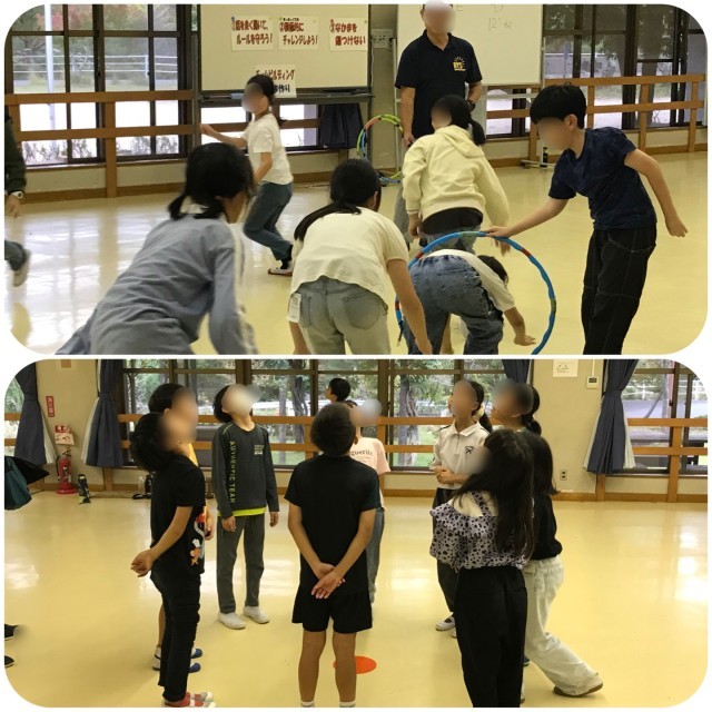 15時からチームビルディングに取り組んでいます。最初に学年でルールを聞いた後、クラスごとに部屋に分かれて実施しました。