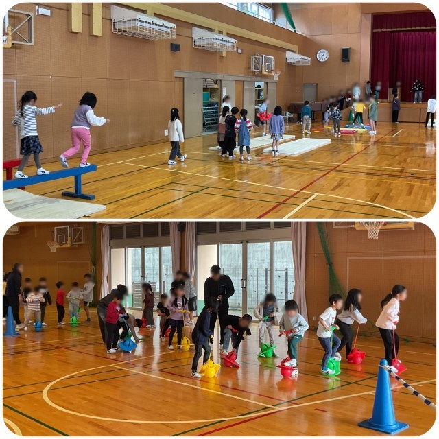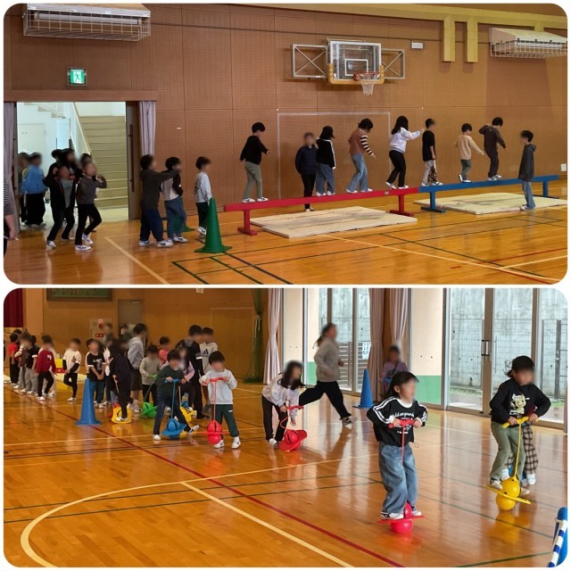 3連休明けの今日は、雨のスタートでした。今日のお昼休みは、体育委員会の皆さんが企画したアスレチックを、1・2年生対象に体育館で行いました。平均台の上を歩いたり、マットの上で前回りをしたり、舞台からマットへジャンプしたりして楽しく運動していました。昨年度、PTAの皆様から運動会の参加賞としていただいたホッピングも登場し、上に乗ってピョンピョンと飛び跳ねていました。体育委員の皆さん、準備及び進行ありがとうございました。次は中学年・・・楽しみですね!