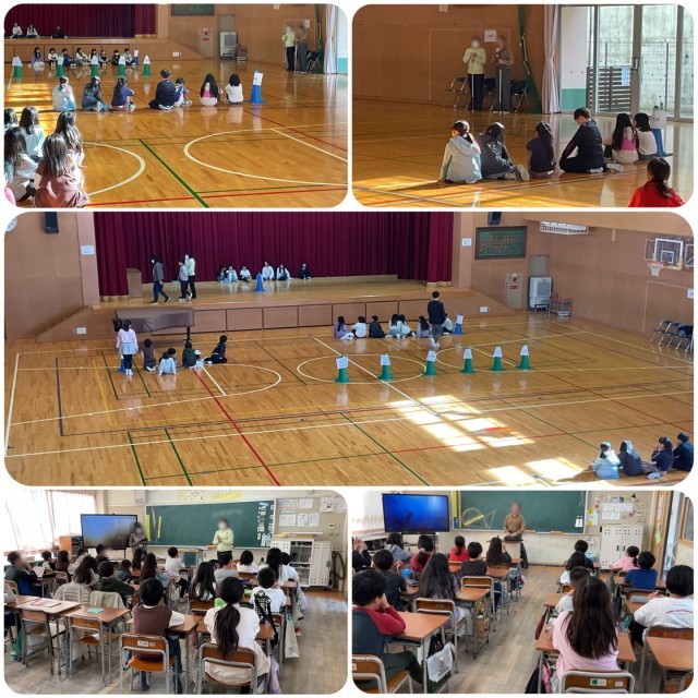 4年生は、3~4時間目にガイドヘルプ体験の学習を行いました。3時間目は体育館に集まって、ガイドヘルプの仕方などを学び、4時間目は教室に戻って、来て下さった講師の方からのお話を聞きました。街で目の不自由な方に出会ったら、今日の経験を活かし、ぜひ声をかけて下さいね。