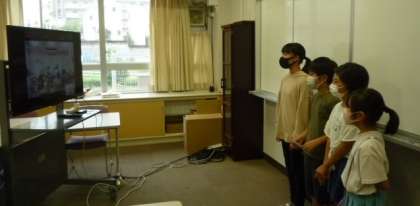 〇昨日の雨で運動場が使用できず、児童朝会は各教室をつないでのZOOM配信となりました。計画委員さんが上手に司会進行を行いました。