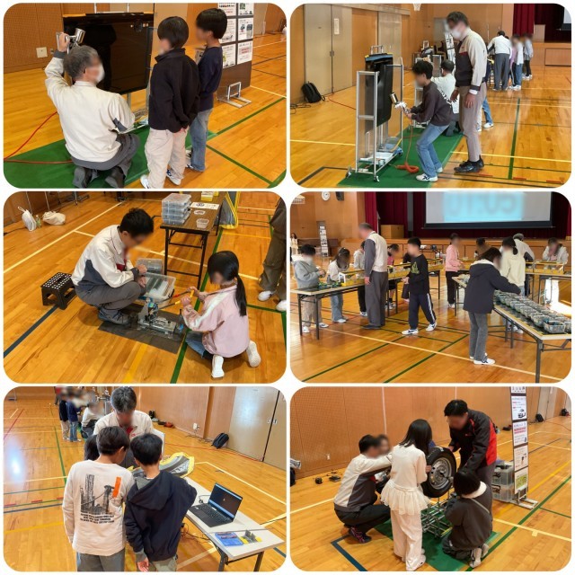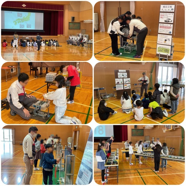 今日は、ダイハツから8名の方々に来ていただき、「ものづくり体験教室」を実施しました。3~4時間目に1組、5~6時間目に2組が体育館で体験学習をします。最初にダイハツの工場や車を作っている工程等の説明を聞いてから、グループに分かれて体験します。子どもたちはどのブースでも真剣に、そして楽しく学んでいました。関係者の皆様、お世話になり、ありがとうございました。