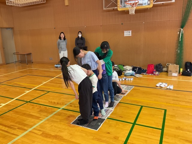 中心にグループで挑戦しました。みんな楽しそうに、笑顔いっぱいの活動でした。