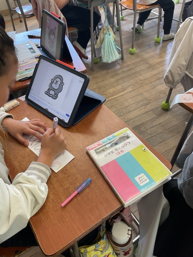 4年生は、英語の授業で使用する名札の作成をしたり、社会科の授業で「大阪府の地形について分かったこと」