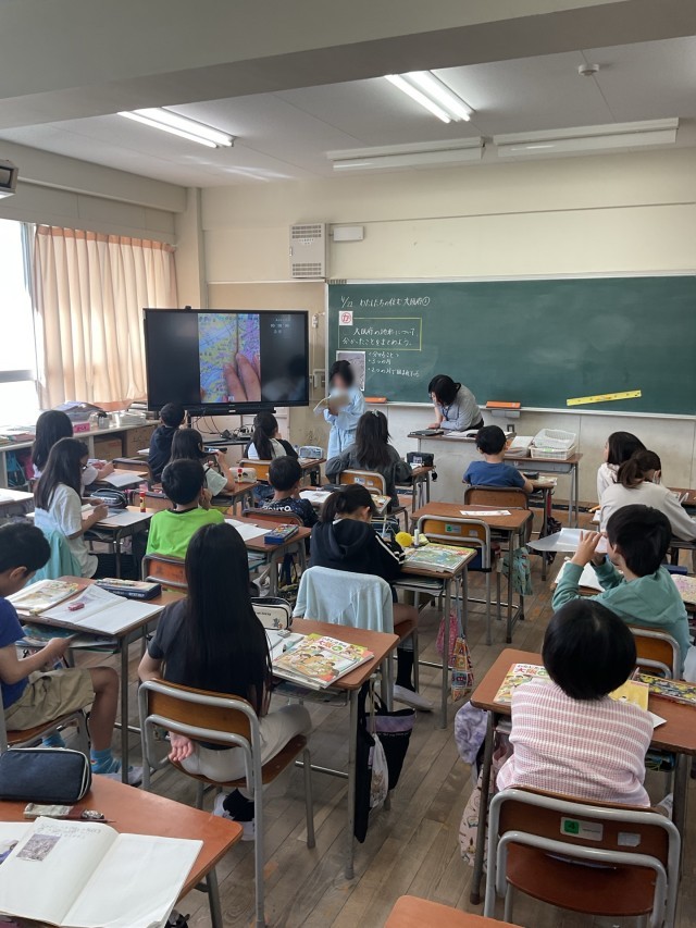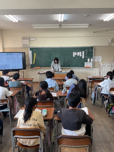 4年2組は、国語科「白いぼうし」の単元で、みんなで大きな声に出して音読をしていました。
