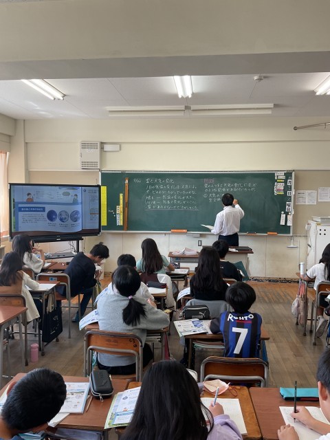 5年生は、理科の「雲と天気の変化」の学習で、雲の様子と天気の変化にはどのような関係があるのかを考え