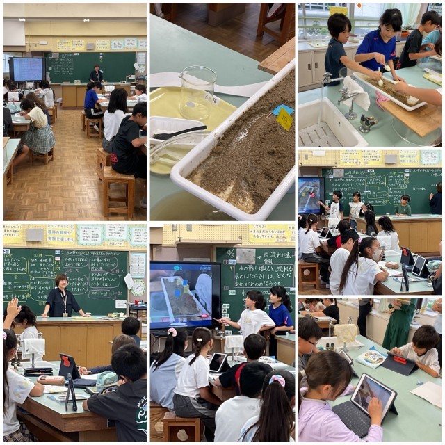 6時間目に5年生の理科で、川の流れのはたらきの授業がありました。