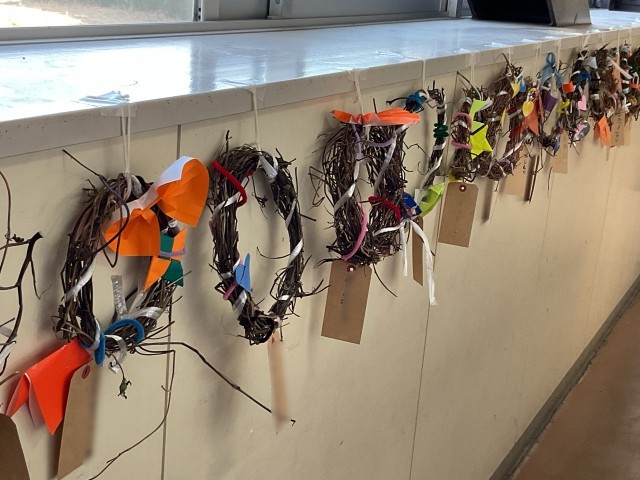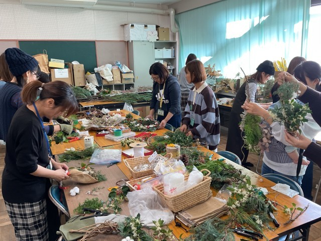 ハーブクラブの方々で、クリスマスのリースや壁飾りや置物などを作っておられました。学校にもいくつかいただきました。ありがとうございました。
